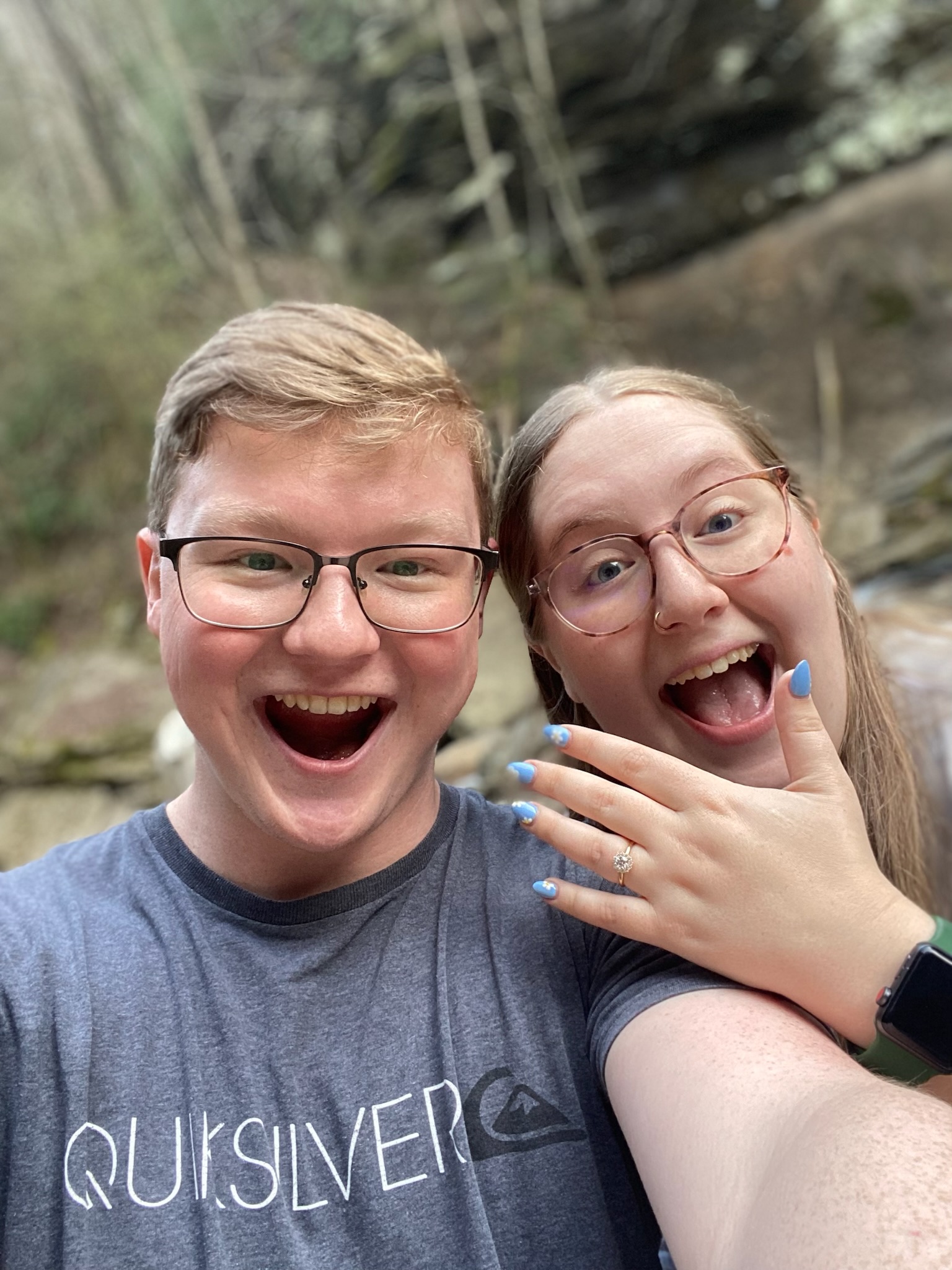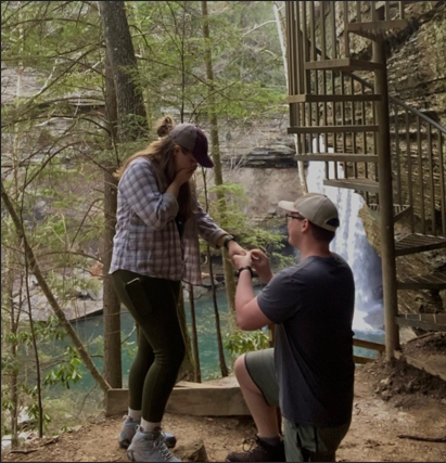 3 years passed by, then Elijah purchased a ring to propose to Taylor. Days after asking her parents for their blessing, he planned a hike to Greeter Falls where she said yes! This hike was also followed by a dinner at O'Charley's.