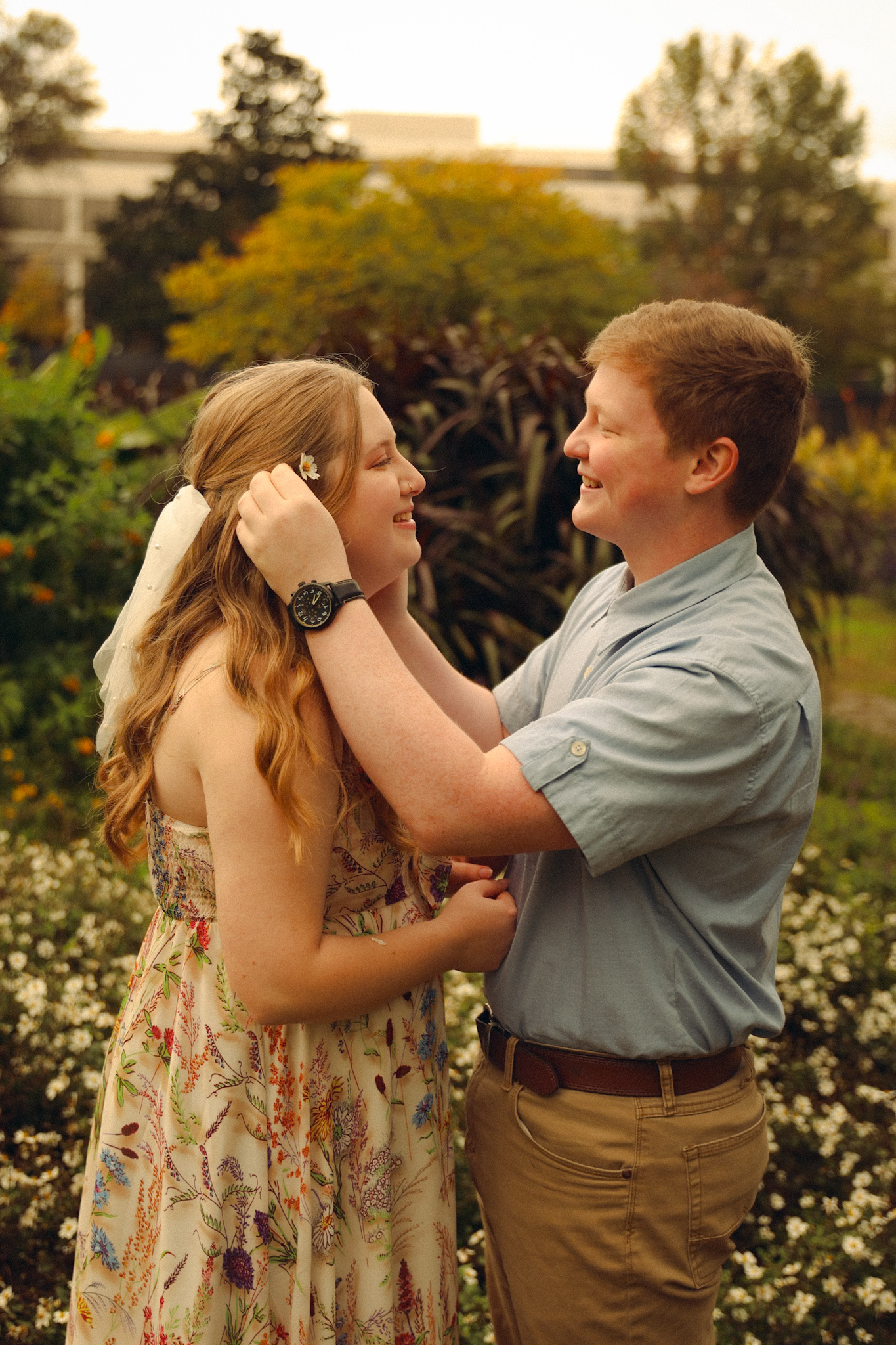 Taylor and Elijah met while attending MTSU at Rutledge Hall. Taylor worked at the front desk of Elijah's dorm. They would both talk to their friend, Reece, while Taylor worked the desk, and eventually they started talking to each other even when Reece wasn't there. Fun Fact: Rutledge Hall is now an office space for MTSU employee's.